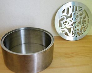 いろは歌の一文をレーザー切断にて切り抜き、ふたとしています。